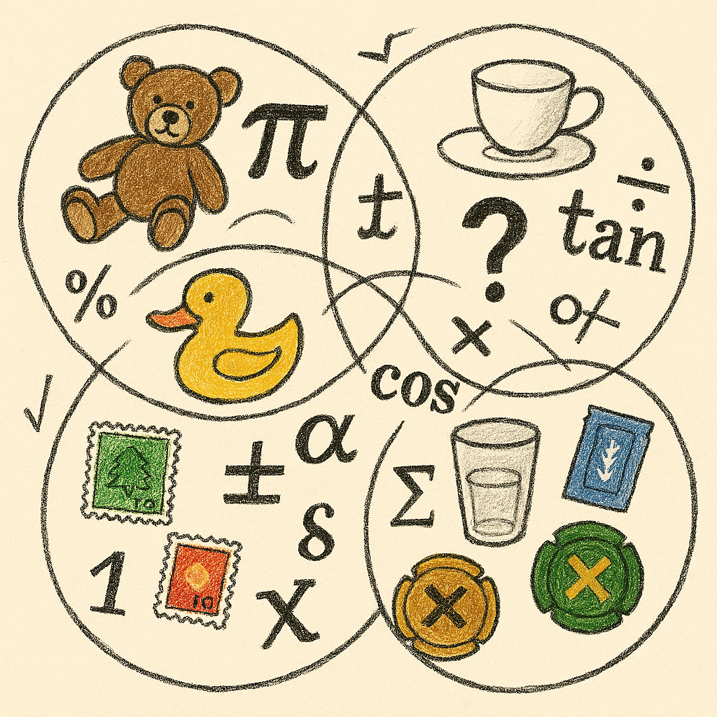 Jaren later dacht ik mijn kinderen te kunnen helpen met hun wiskunde, eerste, tweede, derde leerjaar, hoe moeilijk kon dat zijn? Tot ze thuiskwamen met een nieuw systeem: verzamelingen. Een wonderbaarlijk systeem dat zo simpel was als een zachtgekookt eitje, behalve voor mij dan. Ik stond erbij, keek ernaar en voelde me opnieuw dat onnozeltje dat in wiskunde de logica niet vond. Toen niet en nu nog niet.